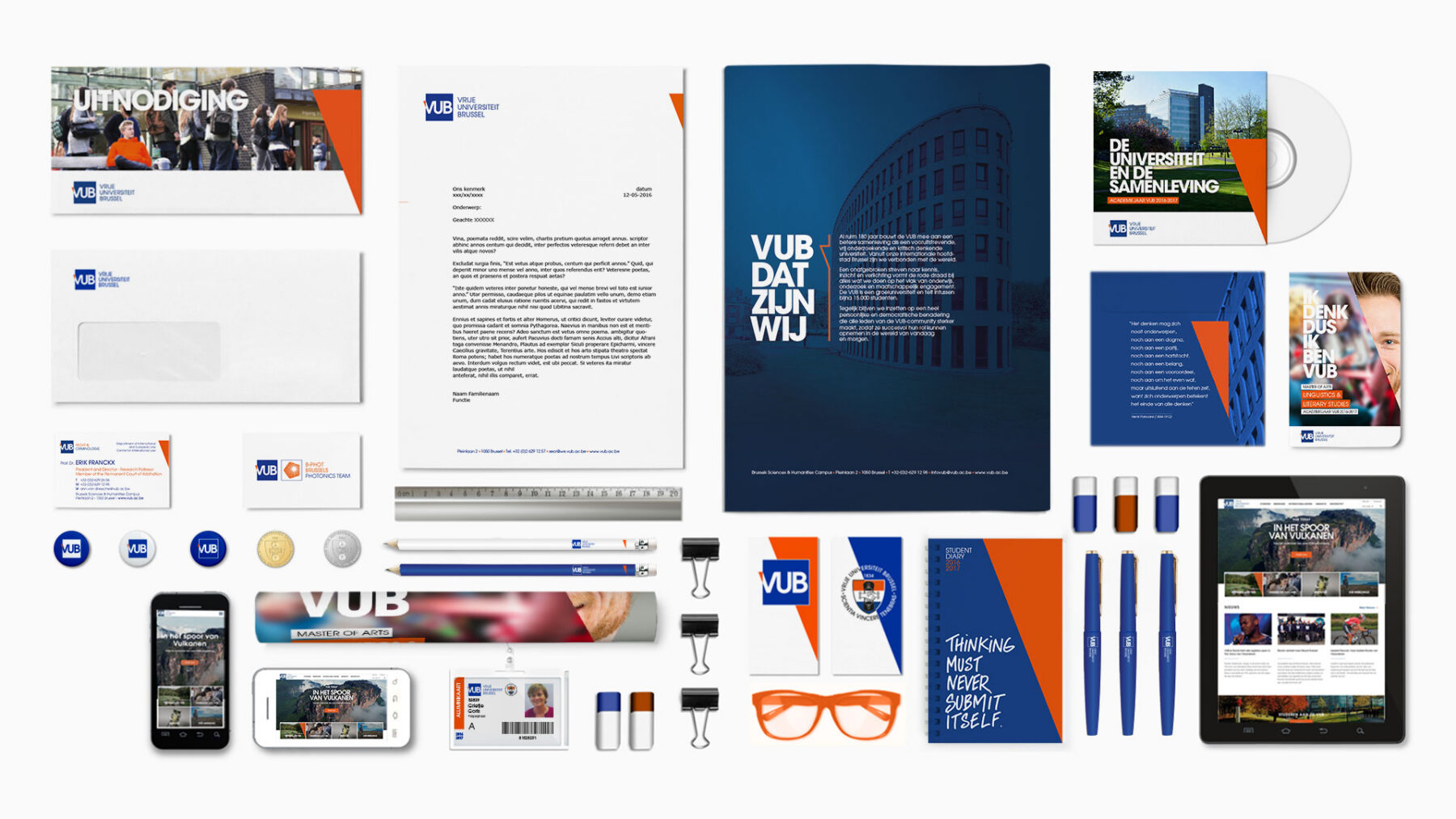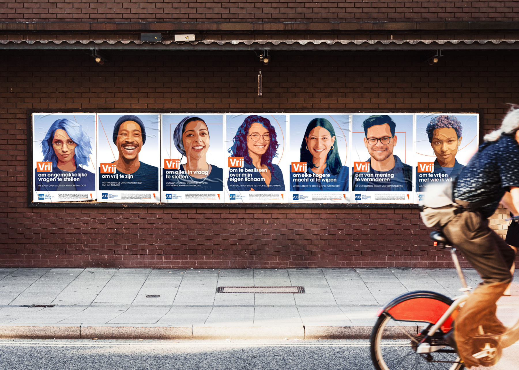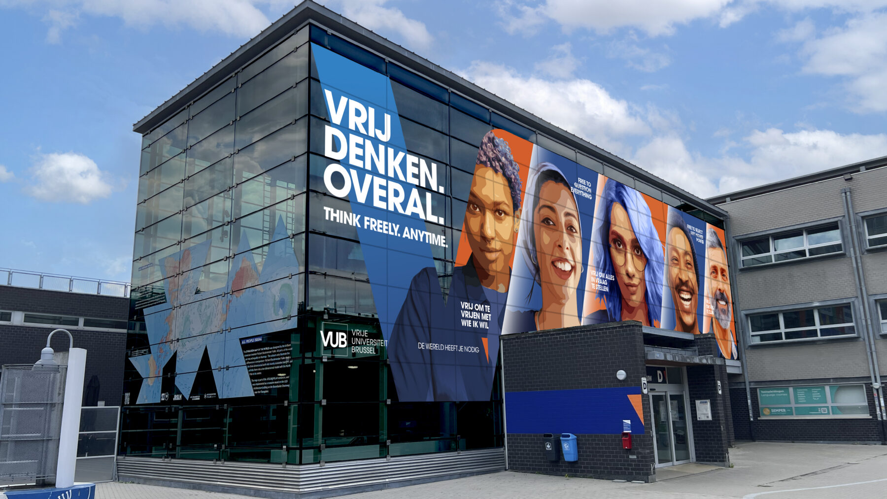 Redelijk eigenzinnig zijn. Buiten de lijntjes kleuren. Out of the box denken. We doen het alle dagen. Maar in het geval van de VUB mag je dat zeer letterlijk nemen. Wij creëerden het nieuwe logo van de VUB… met een hoek af.